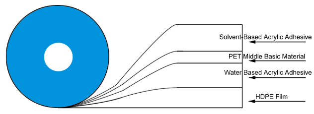 | Code | Material ng Pelikula | Kulay ng Pelikula | Lapad ng Pelikula | Glue Side | Water-based adhesive width | Lapad ng acrylic na malagkit | Haba / roll | Package Roll / ctn |